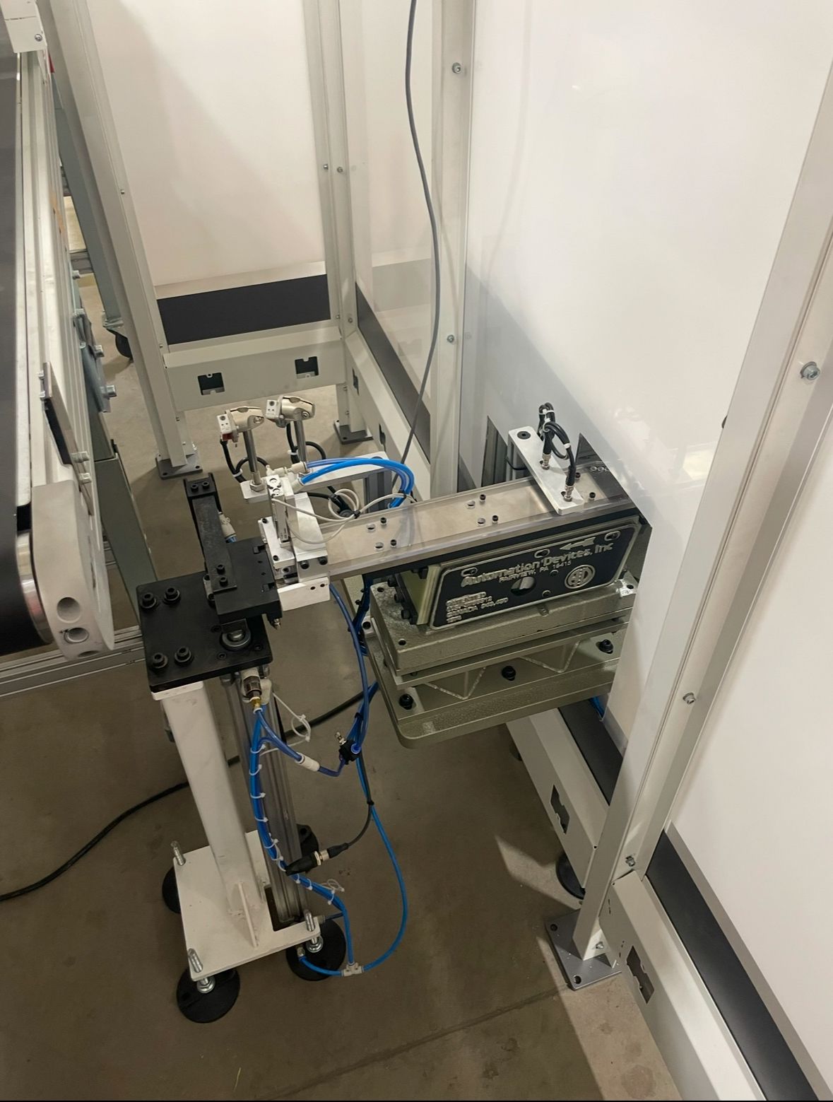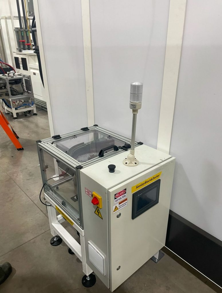 Diseño, construcción y puesta en marcha de equipo automático para dispensar tuercas y comunicar con robot. Integración de tazón vibrador, comunicación con robot de máquina de inyección e integración con seguridad del sistema completo.